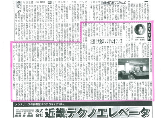 オフィスビル専門誌「週刊ビル経営」にて、当社が大阪の注目レンタルオフィスとして掲載されました。