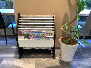 ビジネスラウンジ内にある新聞・雑誌コーナーのご紹介です!