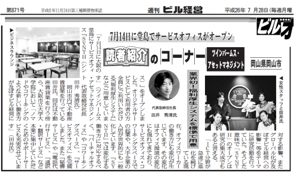 8月6日発行の週間ビル経営に掲載していただきました!