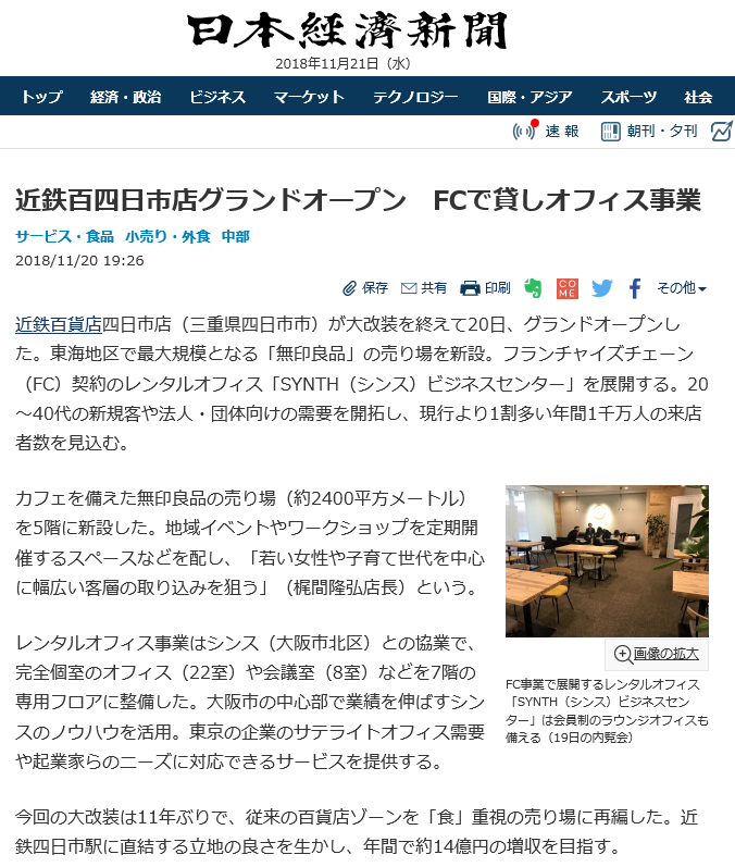 『SYNTHビジネスセンター近鉄四日市』の記事を掲載していただきました。