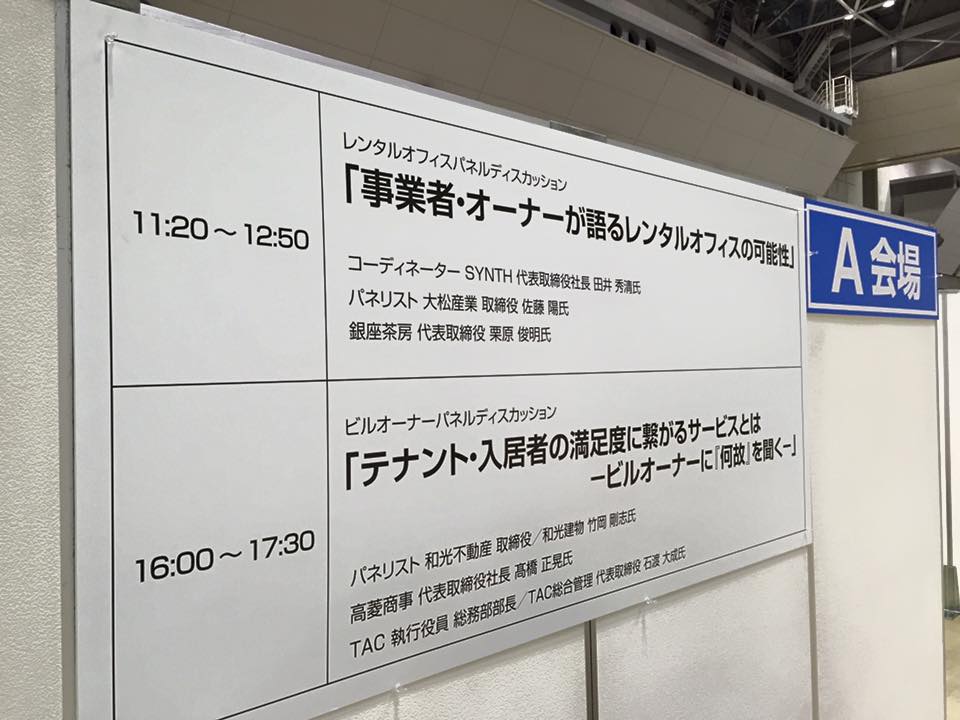 「パネルディスカッションのコーディネーターとして参加し、経営者からの視点でレンタルオフィス、集客について講演しました。ご参加頂いた方には、厚く御礼申し上げます。このような場を通じて、業界の発展に寄与していきたいと思います。」 ![]() 不動産業界のレンタルオフィス。東京ビッグサイトとレンタルオフィス。 |